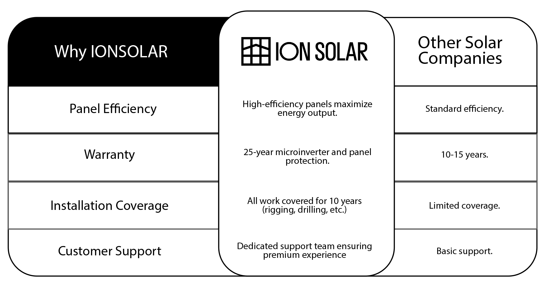 *With a Power Purchase Agreement (PPA), a third-party owns the panels- we install them on your roof, and you don't buy any equipment. You just pay for the solar power they produce at a set per-kWh rate (required to be lower than your bill). PPAs are still available, and the system owner can claim eligible tax credits- those savings are built into your rate. ION designs, installs, and monitors the system, and if anything breaks, we come and fix it.